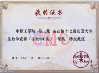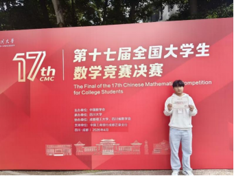 4月18日至19日,第十七届全国大员工数学竞赛决赛在四川成都举行,我校学子晏三龙凭借扎实的数学功底与出色的临场发挥,在决赛中脱颖而出,荣获全国一等奖(非数学B类)。