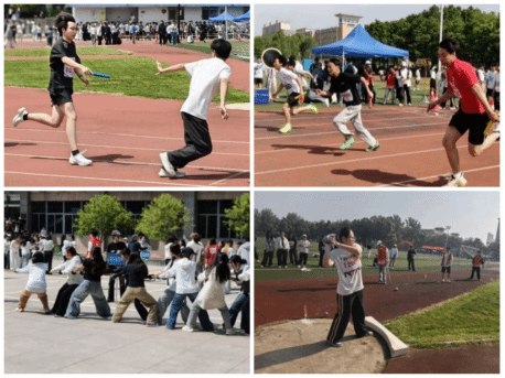 赛场上,运动员们在短跑、中长跑、接力、跳远、铅球等项目中全力以赴、挑战自我;拔河、混合跳大绳等集体项目中,师生齐心协力、默契配合。