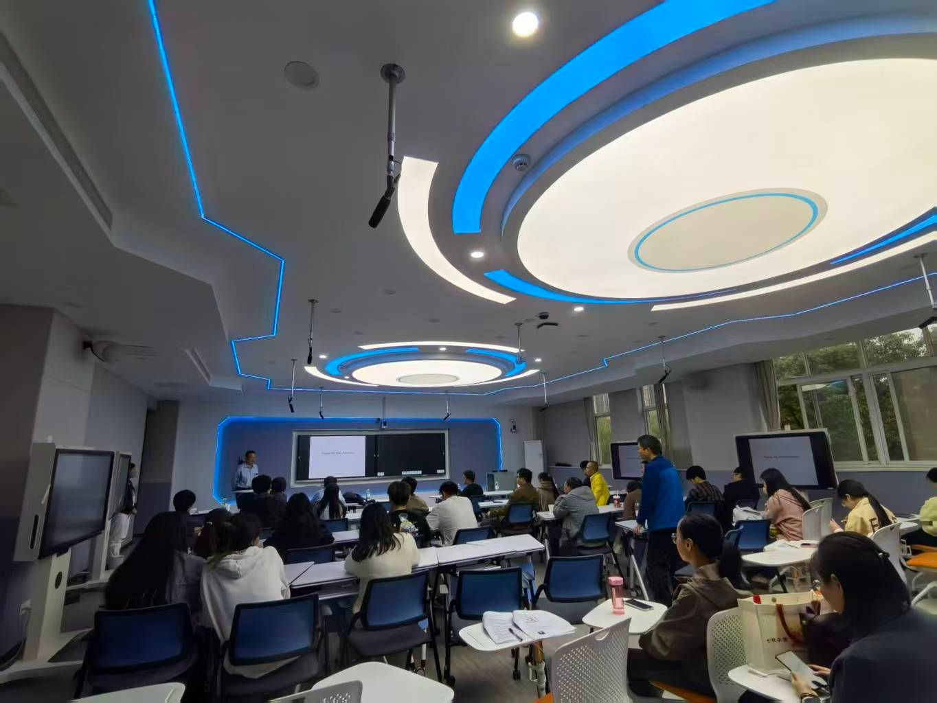 报告内容翔实、结构严谨,充分展现耿献国在可积系统及应用领域的卓越学术成就,为与会师生提供了深刻的学术启示和全新的研究视角。报告结束后,耿献国还与师生进行深入交流和讨论,针对师生提出的问题作详细解答。