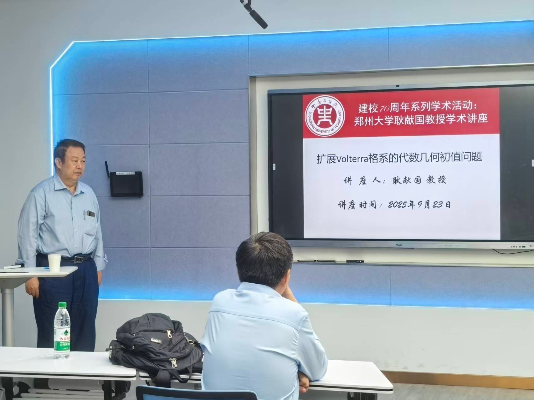 9月23日,应我校科技处和mansion88明升邀请,郑州大学耿献国教授在龙湖校区作题为《Algebro-geometric quasi-periodic solutions to the hierarchy of extended Volterra lattices》的学术报告。报告由mansion88明升院长闫振亚教授主持,mansion88明升部分教师和研究生参加讲座。